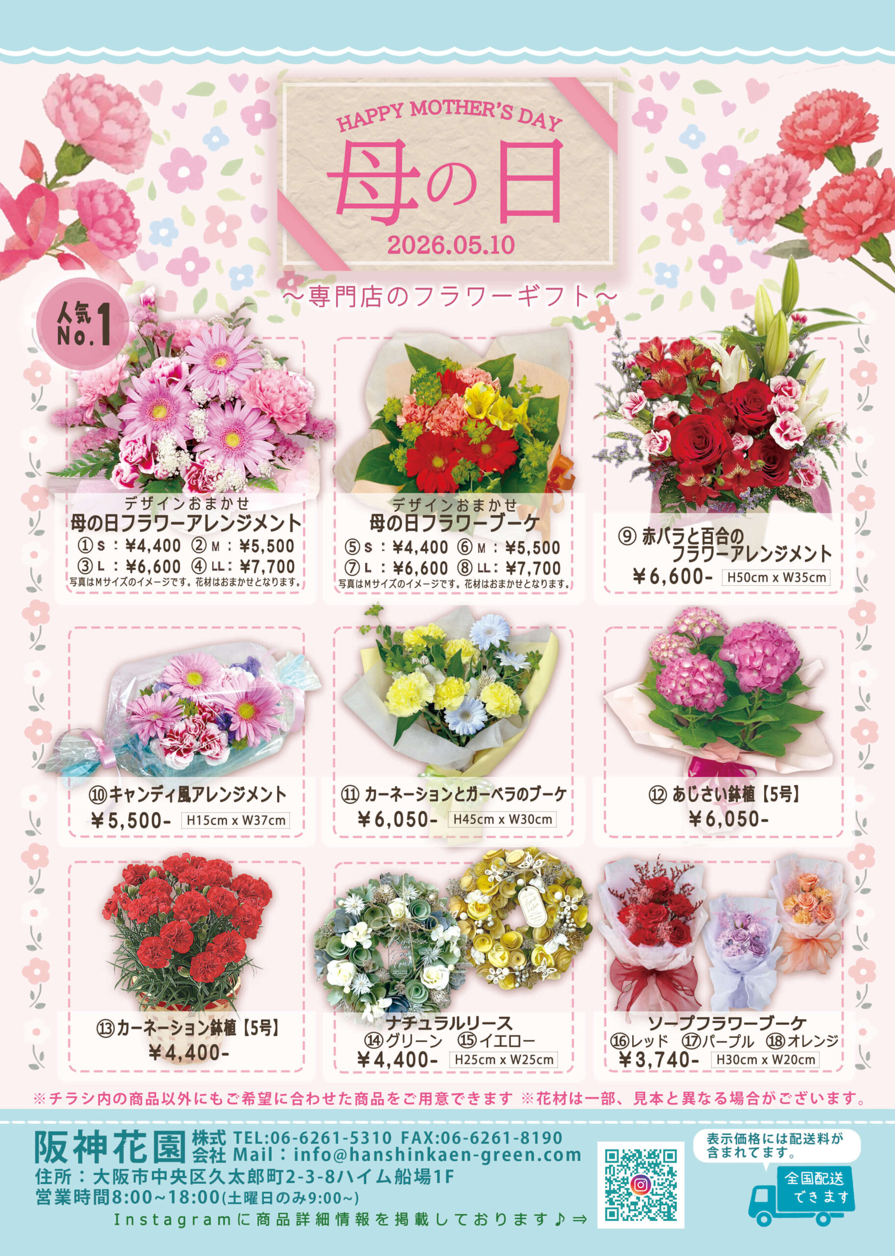 🌸大阪市中央区全域および近郊エリアは送料無料でお届けしております。