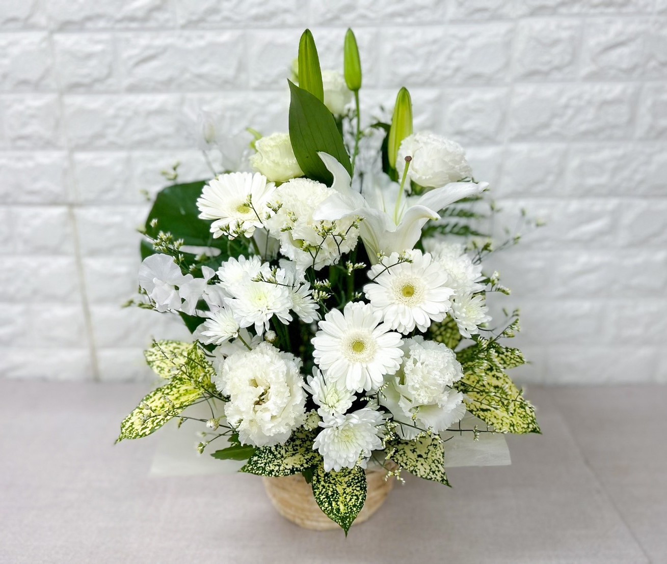お盆のお供えアレンジメントや墓花・仏花などのご予約も受け付けております。
